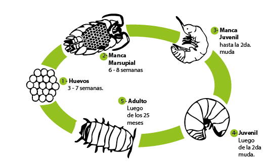 El ciclo máximo de vida ronda los 3 años, y si las condiciones climáticas son favorables pueden tener hasta dos generaciones al año, con un primer ciclo reproductivo en primavera y un segundo menos relevante en el otoño.